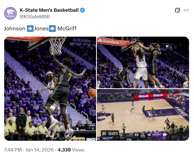 Through my work with K-State Athletics, I create in-game content across multiple sports while supporting real-time digital storytelling. This role involves pulling photos from team photographers, editing them quickly, and preparing content for social platforms as games unfold. I design engaging collages, live updates, and graphics that keep fans informed with up-to-the-minute stats and score changes. In addition, I capture pre-, mid-, and post-game video clips for stories, offering fans a more personal, behind-the-scenes look at the athletes and the game-day environment.